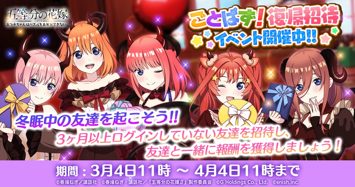 • 「五等分の花嫁」ゲームアプリの友達招待イベント開催中