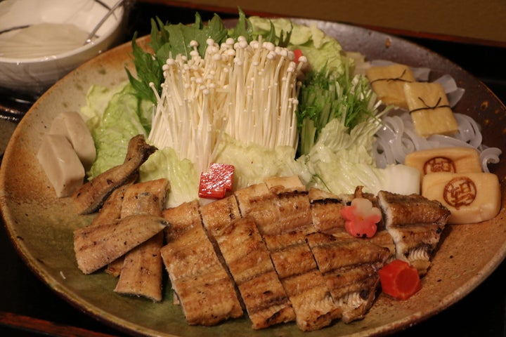 うなぎの名物「うすき鍋」を食べ、三田村がその味に驚く。