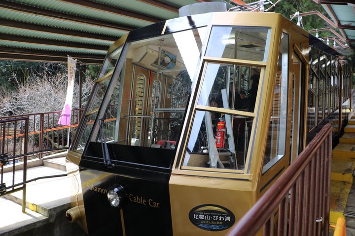 坂本ケーブルで琵琶湖の絶景を楽しみ、延暦寺の改修中の国宝「根本中堂」の工事を見学。