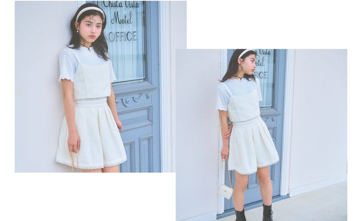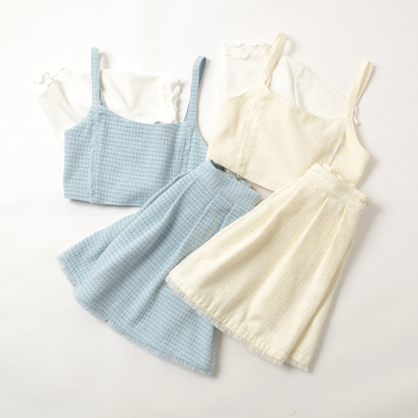 ツイードとフリンジが特徴のセットアップや、ラメやリボンデザインのアイテムが魅力的です。