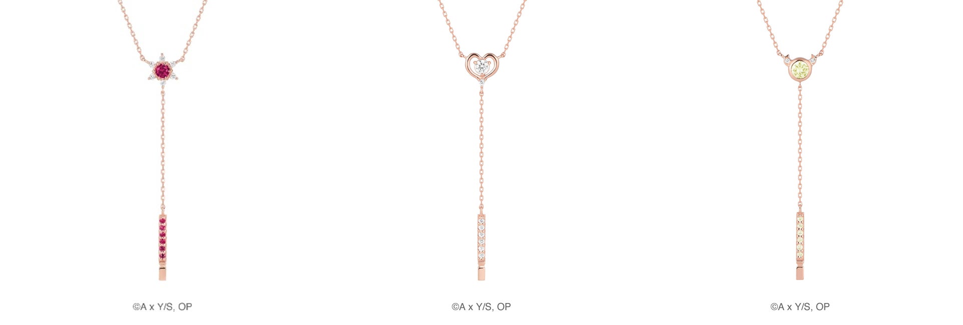 メインキャラクター「アイ」「アクア」「ルビー」をイメージしたネックレスや、「B小町」メンバーの特徴を表現したコレクションもあります。