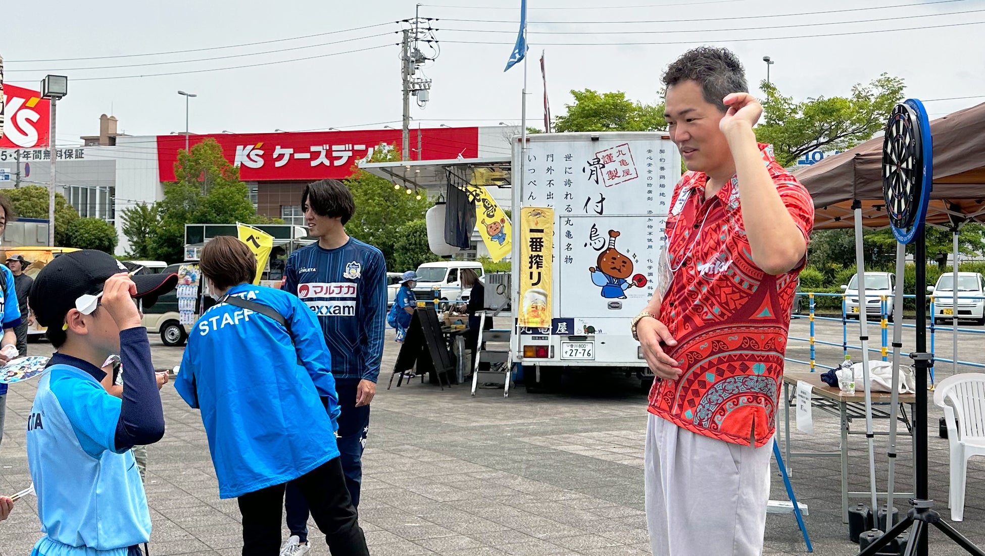 5月27日(土)のホーム戦でもダーツ体験会を開催。本スクールで講師を務める鈴木選手とカマタマーレ讃岐の竹村俊二選手がブースに立ち、お子様からシニアまで多くの方がダーツを楽しみました。