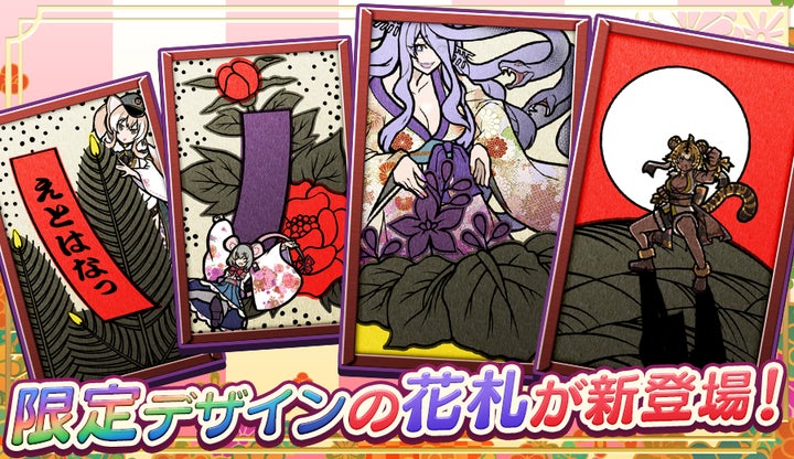 新要素として、イラスト『札絵』を使った対戦や新ルールの花札バトル『争奪道場』が登場。