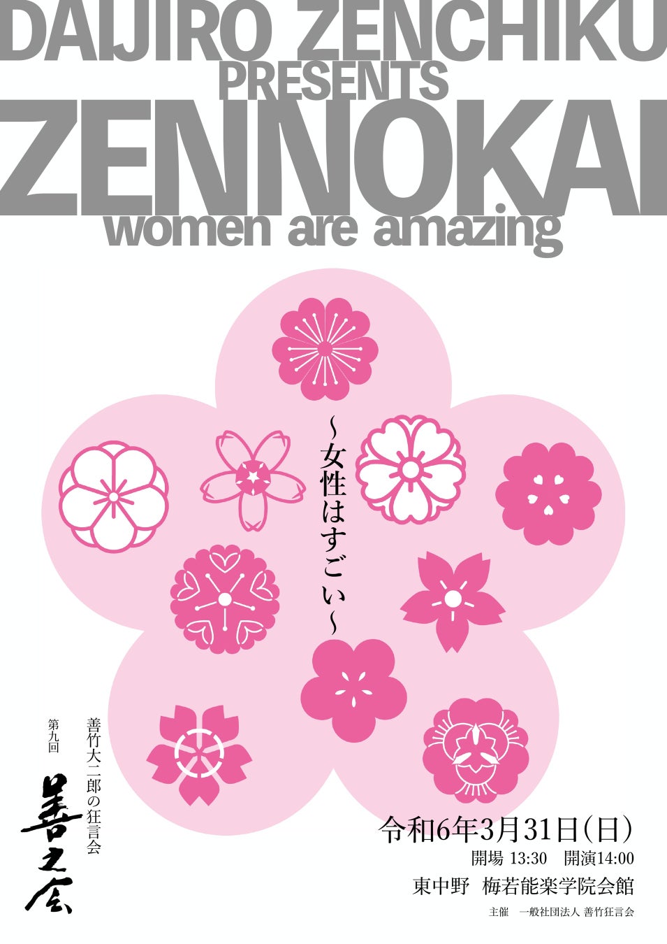 狂言イベントでは、茂山千三郎師や善竹徳一郎師らが出演し、女性の凄さを表現します。