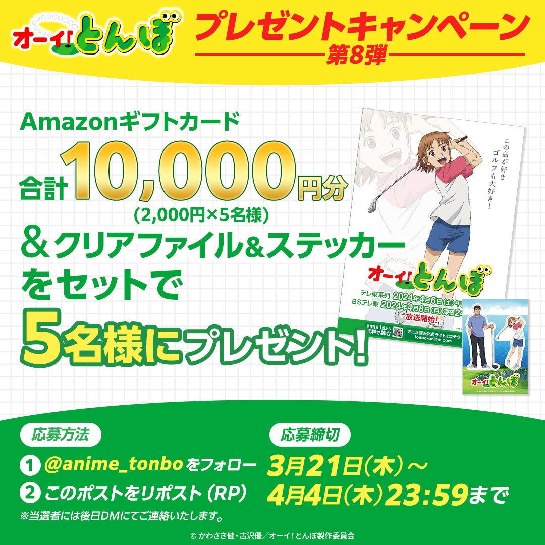 週刊ゴルフダイジェストで人気の連載作品『オーイ!とんぼ』が、4月6日からテレビ東京系列とBSテレ東でアニメ化されます。