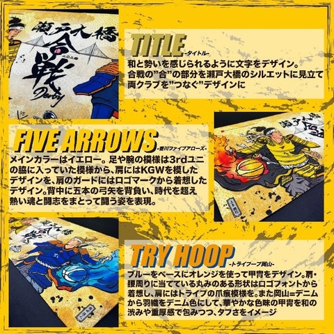 香川ファイブアローズとトライフープ岡山のコラボグッズが3/23-24の岡山戦で登場します。