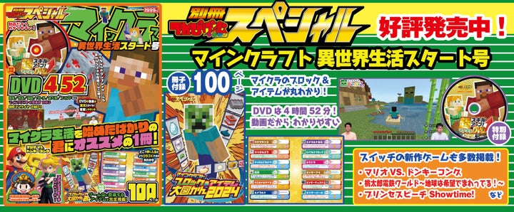 特典付き雑誌にはブロック&アイテムの大図鑑やマイクラDVDが付属。