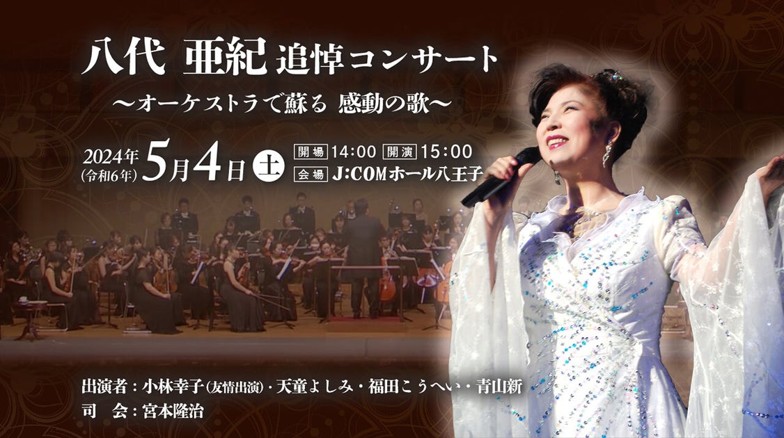 コンサートでは八代さんの名曲がオーケストラによって生演奏され、感動の瞬間が再現されます。