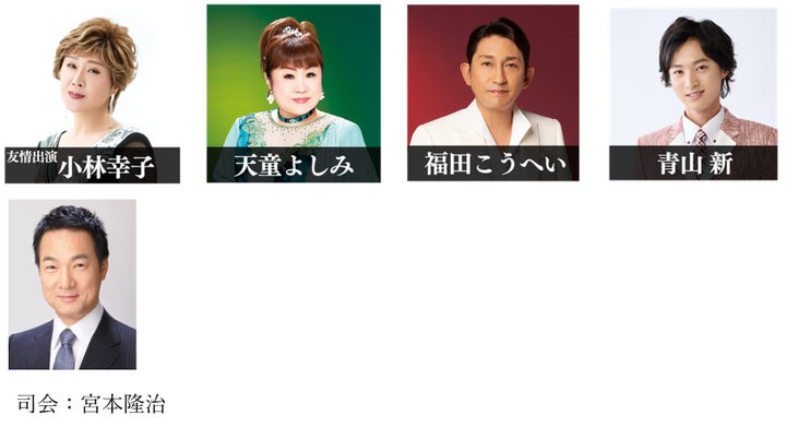 追悼コンサートには小林幸子、天童よしみ、福田こうへい、青山新が出演し、名曲を披露します。