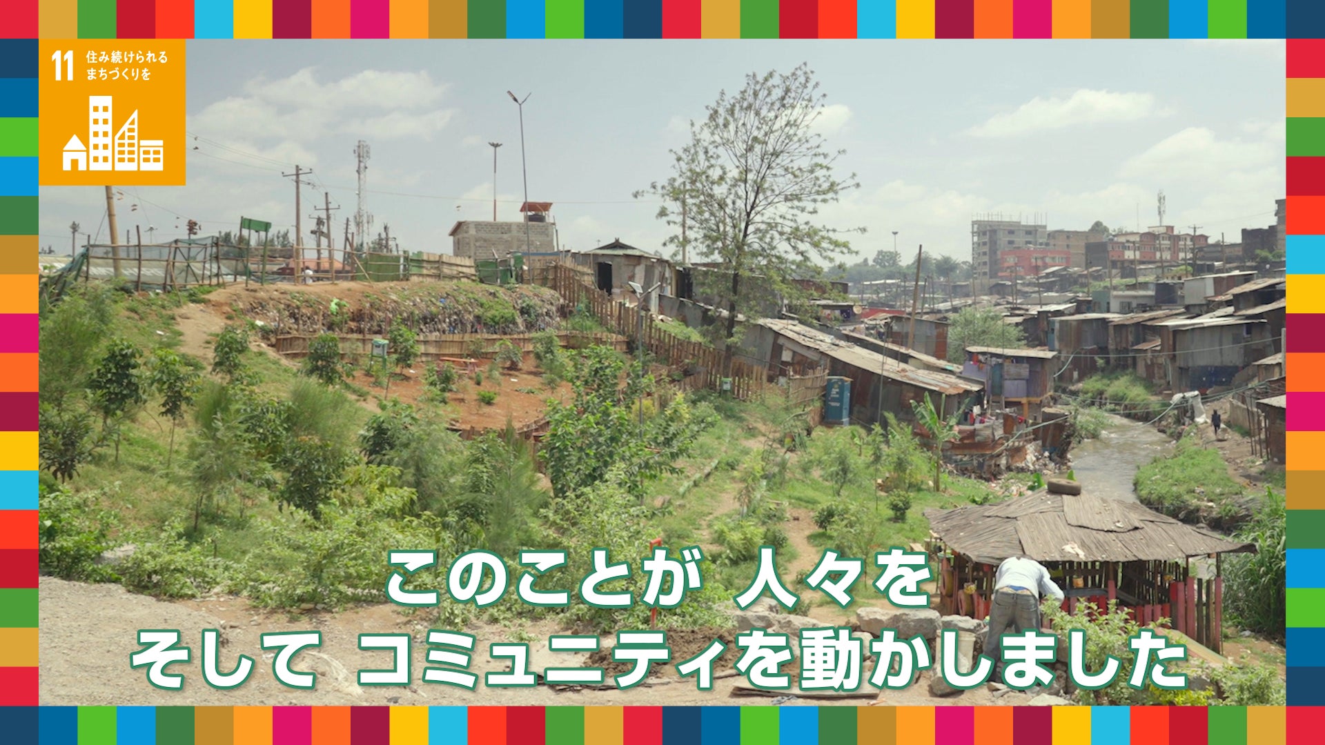 動画では国連ハビタットと協力し、インフォーマル居住区の課題や若者の取り組みを紹介しています。