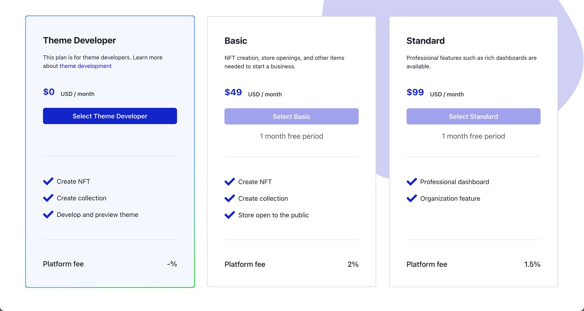 現在はテーマ開発者プランのみ利用できます。月額無料で登録することができます。