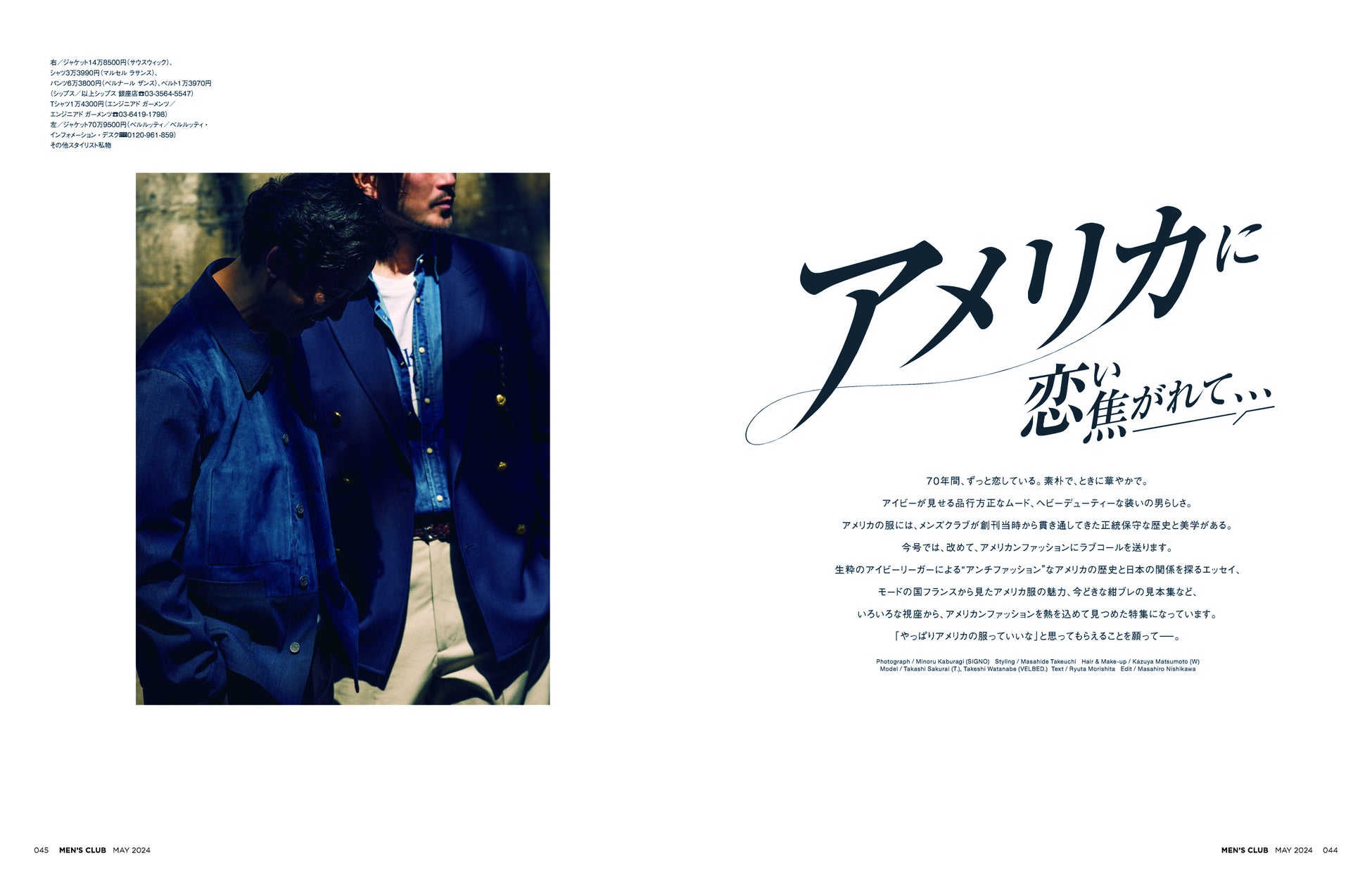 今号ではアメリカンファッションに焦点を当て、アイビーリーガーのアンチファッションやフランスからの視点などを特集しています。