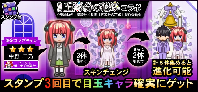 コラボスキンには五つ子キャラクターが登場し、限定鬼「中野マルオ」も再登場。