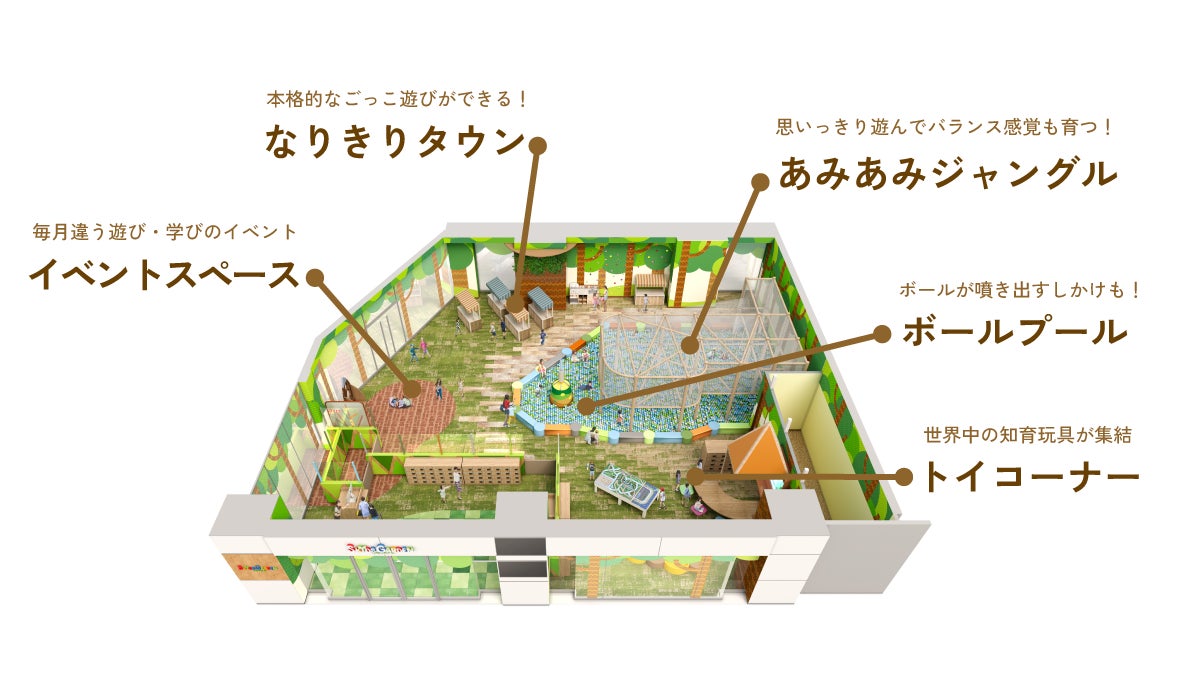 ボールプールやあみあみジャングルなど様々な遊び場があり、知育玩具やごっこ遊びも楽しめます。