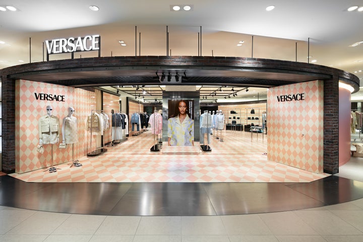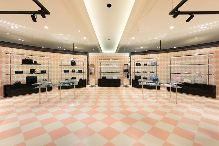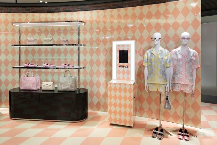 阪急うめだ本店で開催される「ヴェルサーチェ 2024 Spring & Summer Collection」は、ピンクを基調としたチェッカーボード柄が特徴です。