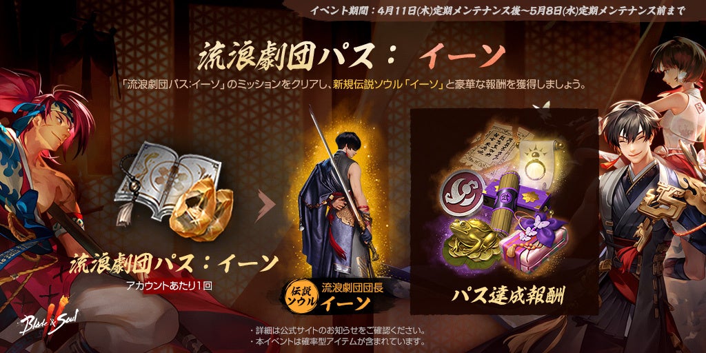 さらに、期間限定イベント「流浪劇団パス:イーソ」が開催され、豪華報酬が獲得できます。