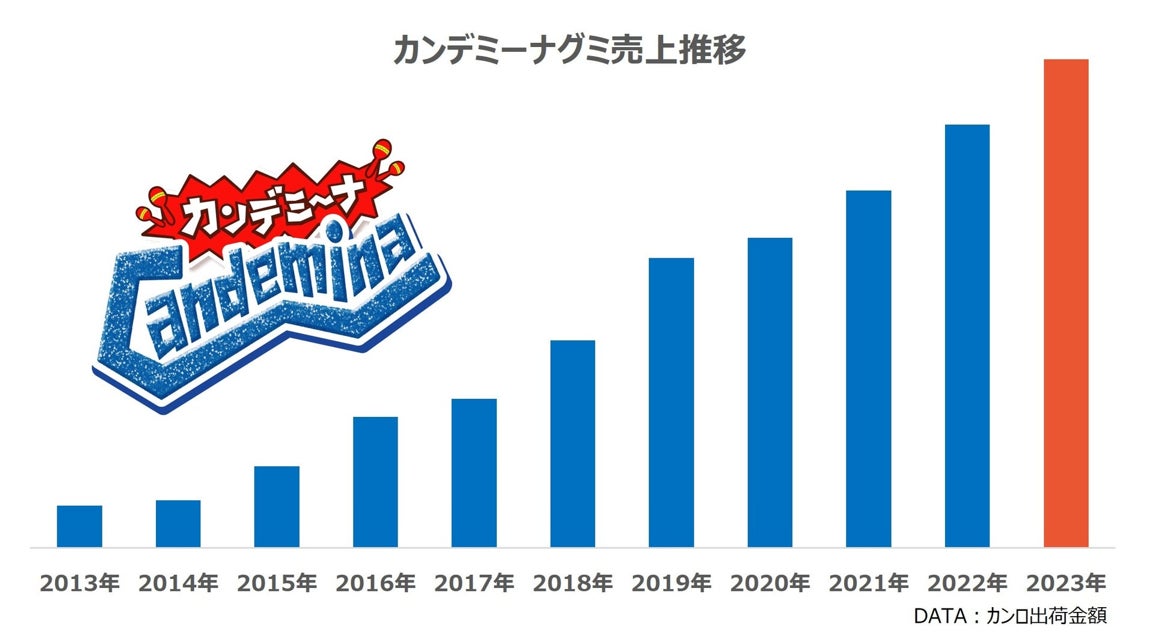 10周年を迎えたエンターテインメントグミブランド「カンデミーナ」は、2022年に30億円の売上を達成し、2023年には食品産業技術功労賞を受賞しました。