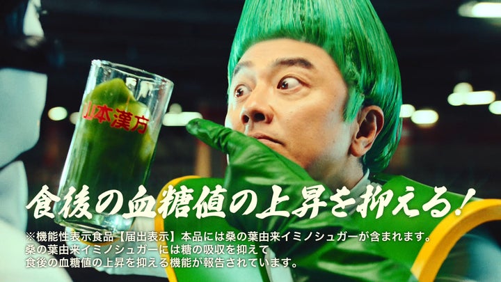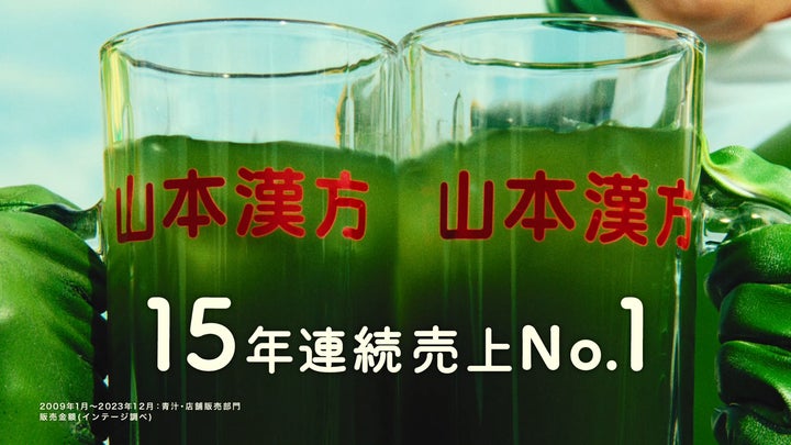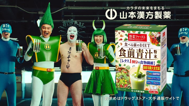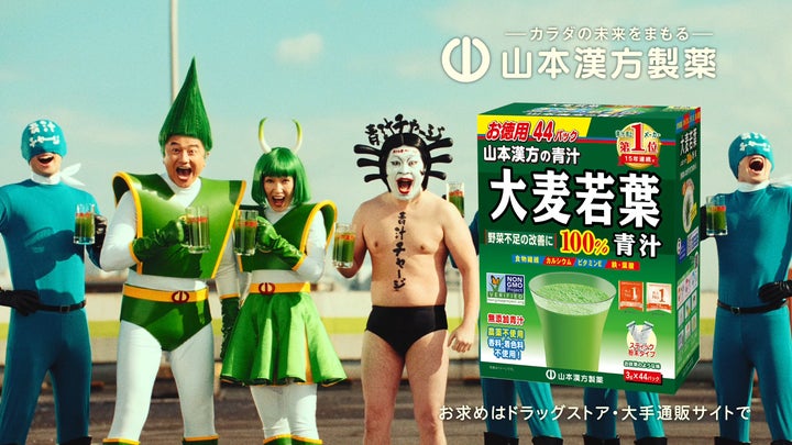 山本漢方製薬のCMシリーズは、15年連続で売上日本一の大麦若葉粉末100%を使用した「青汁ラヴァーズ登場」篇や、「食前青汁」篇などが人気を集めています。