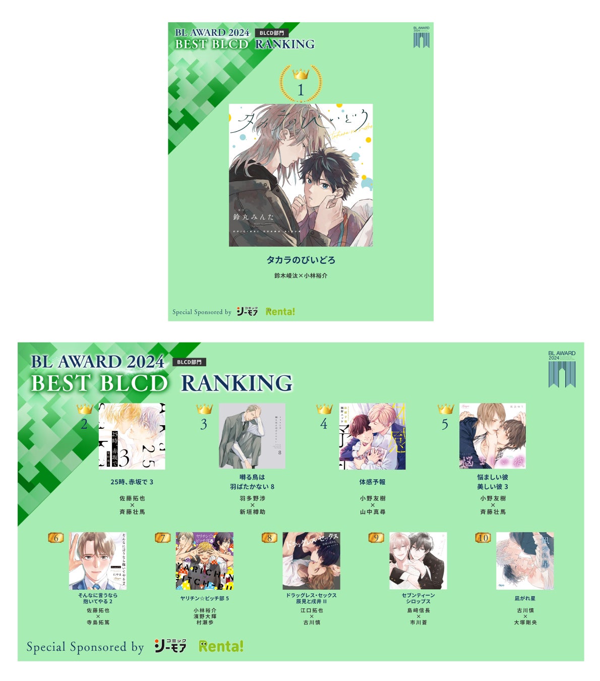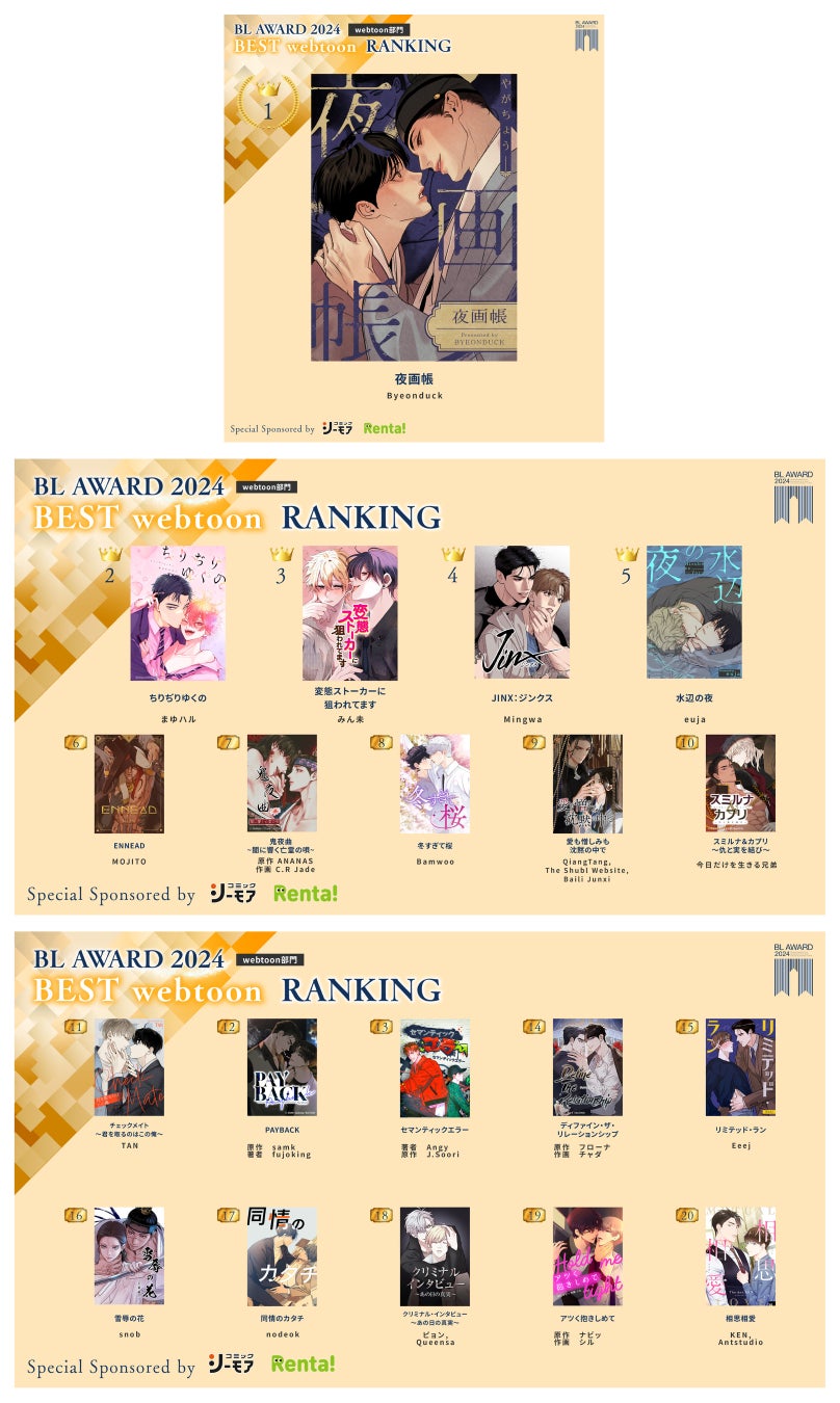 この人気投票によるランキングは、ファンが選ぶ最も輝いたBL作品を表彰するもので、今年が15回目の開催となります。