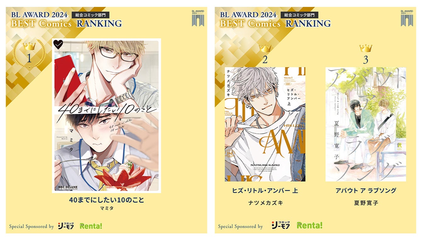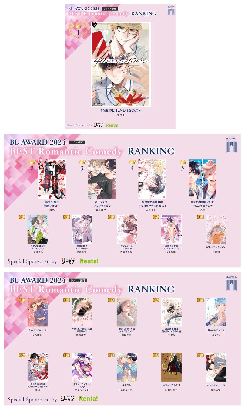 今年の総合コミック部門1位は、『40までにしたい10のこと』(マミタ)であり、同作品はラブコメ部門でも1位を獲得しました。