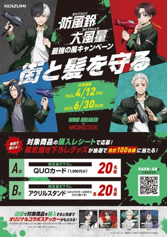 このキャンペーンでは、『MONSTER』と『WIND BREAKER』のコラボグッズがプレゼントされるほか、SNSキャンペーンも実施されます。