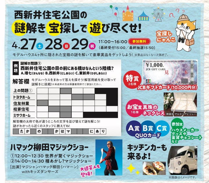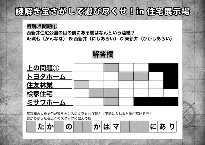 人気の謎解きイベント「宝探し」が、住宅展示場で開催されます。