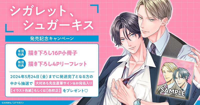 ホーリンラブブックスでは、大村あも先生の最新コミックス『シガレット、シュガーキス』の発売記念キャンペーンを実施中です。
