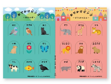 シールブックは3~5歳向けで、おでかけビンゴや図鑑ページが楽しめます。