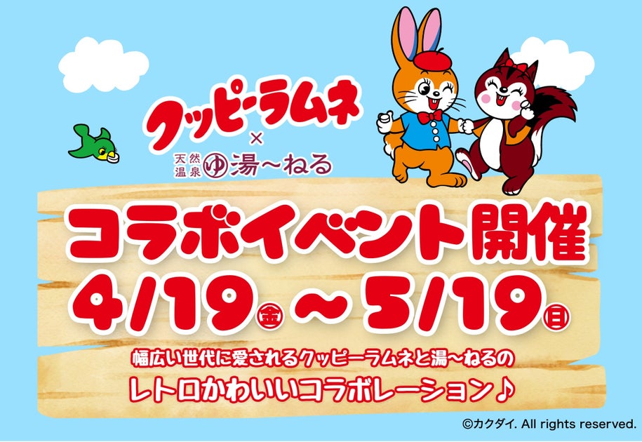 2024年4月19日から5月19日まで、湯~ねるはクッピーラムネとのコラボイベントを開催します。