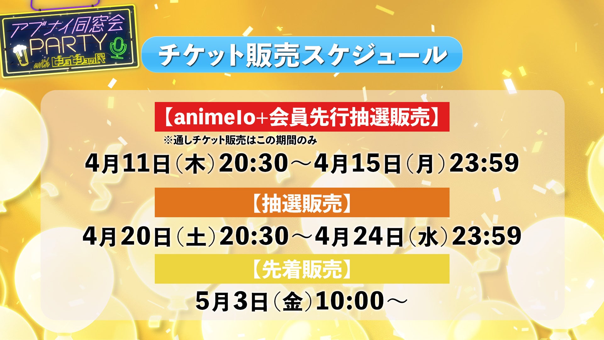 チケットはアニメロプラスチャンネル会員向けに先行販売され、特典としてオリジナルコースターやポーチが用意されています。