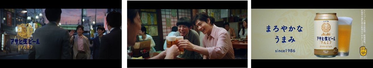 - マルエフを注文し、笑顔で乾杯する姿が“ぬくもりのある世界観”を表現
