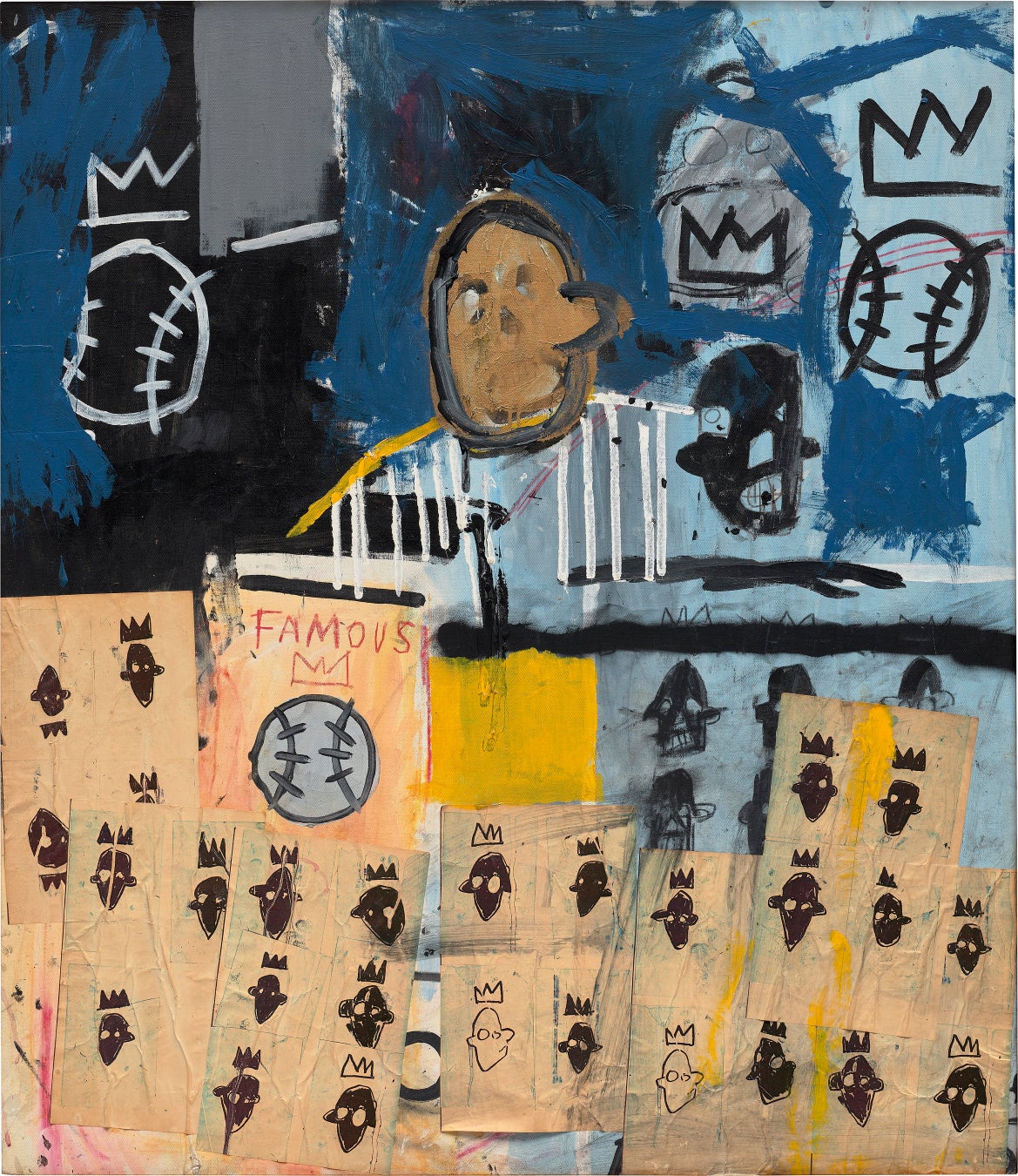 また、≪Untitled (Portrait of a Famous Ballplayer)≫はバスキアのストリートアートからキャンバスへの移行を象徴し、人種やアイデンティティに対するコメントを込めています。