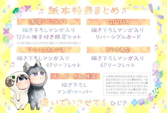 アニメイト特典やコミコミスタジオ特典など、各店舗で異なる特典が用意されています。