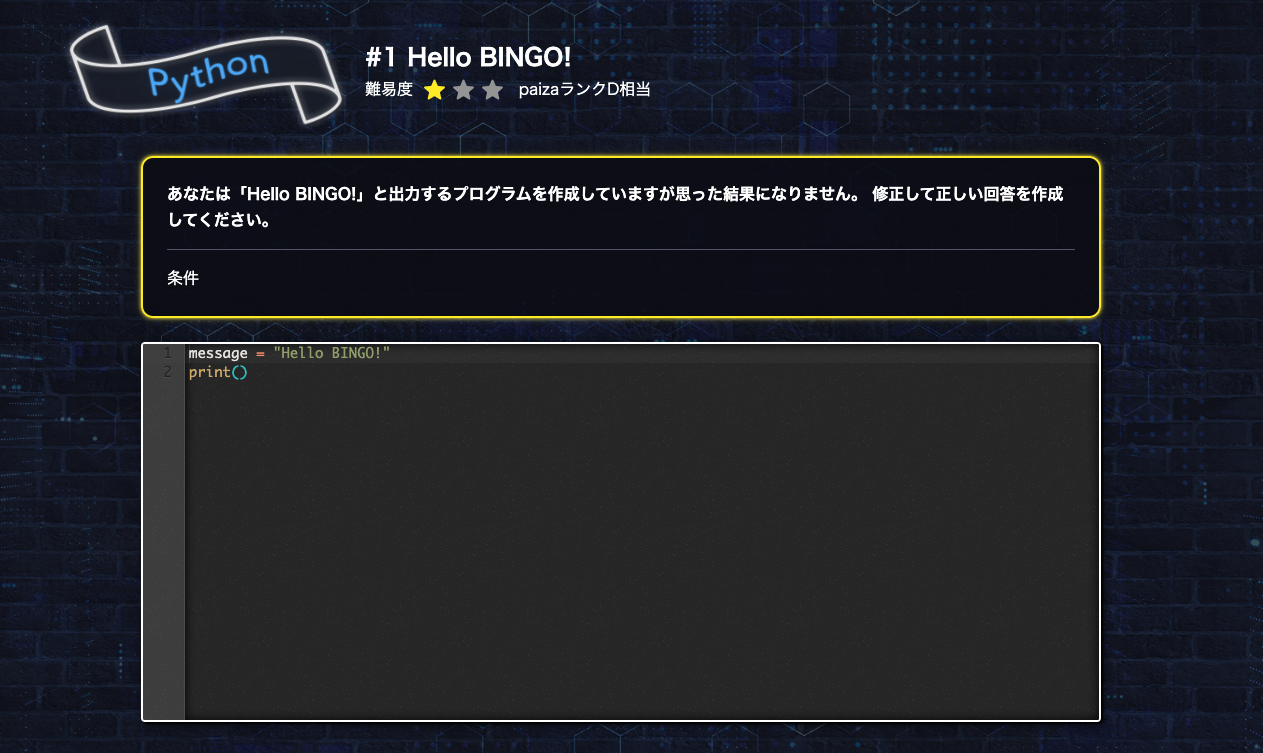 ※ゲームに挑戦するためにはpaizaへの登録(無料)が必要です。