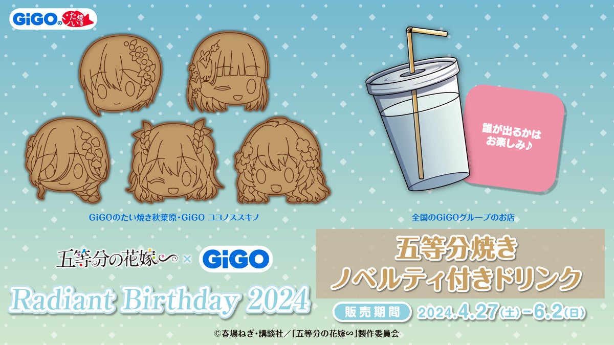 2024年4月27日(土)から6月2日(日)まで、GiGOグループのお店で『五等分の花嫁∽ × GiGO Radiant Birthday 2024』が開催されます。