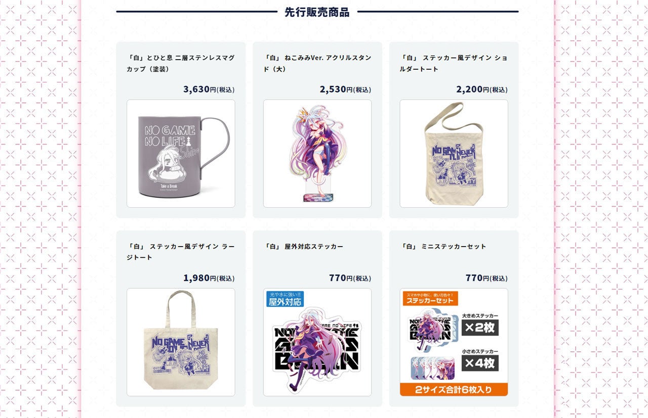 イベント期間中は物販も行われ、『ノーゲーム・ノーライフ』関連グッズが販売されます。