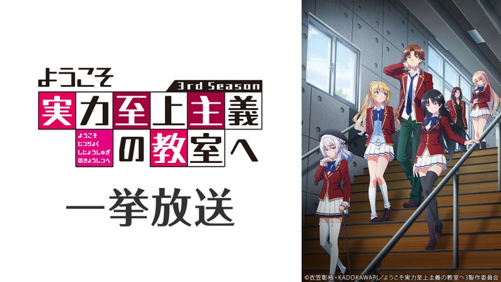 • 4/15(月)這いよれ!ニャル子さん、4/20(土)外科医エリーゼ、4/21(日)ようこそ実力至上主義の教室へ 3rd Season 一挙放送