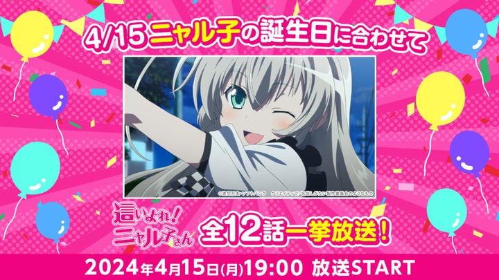 4/15(月)19:00~「這いよれ!ニャル子さん」全12話一挙放送、4/20(土)19:00~「外科医エリーゼ」全12話一挙放送、4/21(日)19:00~「ようこそ実力至上主義の教室へ 3rd Season」全13話一挙放送です。
