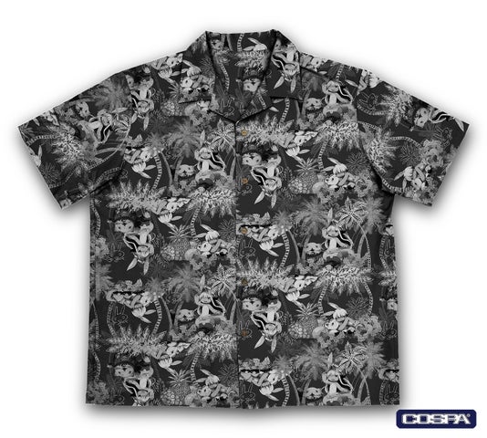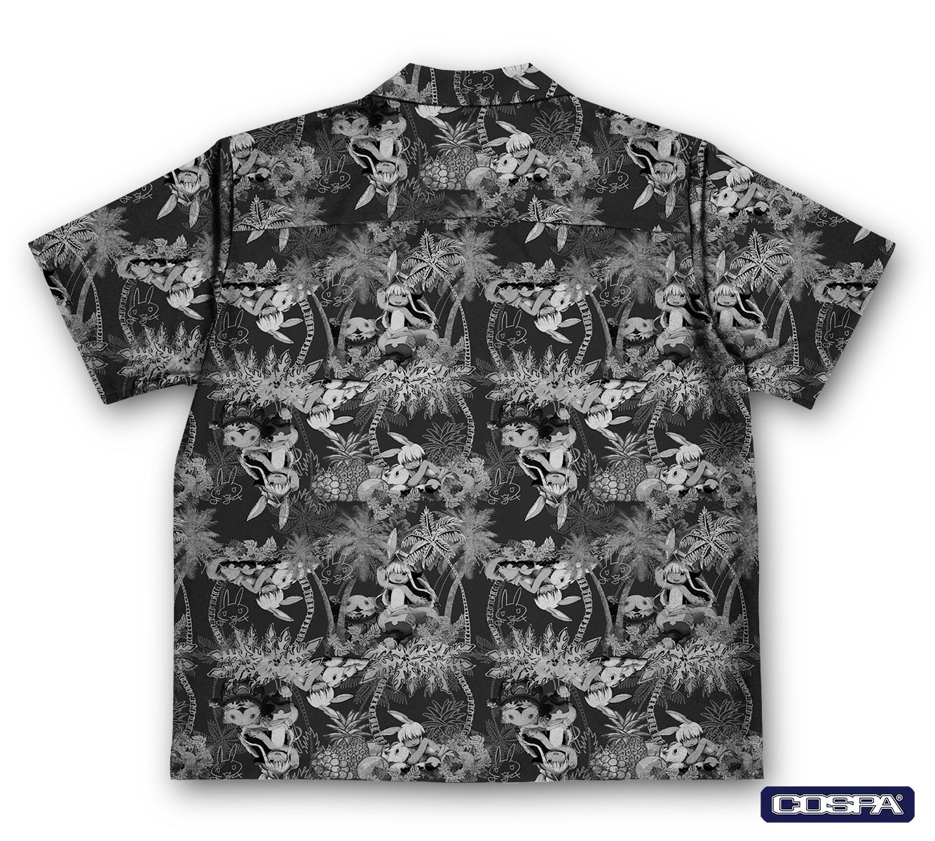 『メイドインアビス 烈日の黄金郷』のナナチ&ミーティのアロハシャツが登場!伝統的なアロハ柄がデザインされ、色落ちしにくいプリントと快適な着心地が特徴です。