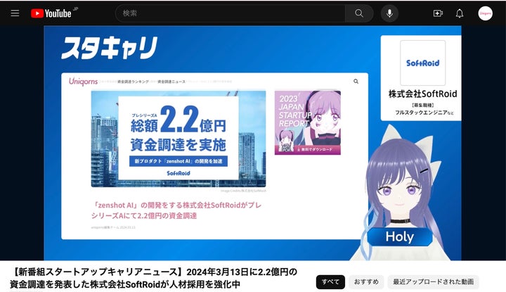 EmolutionCreativeが運営するスタートアップメディア「uniqorns」は、新番組「スタキャリ」で転職エージェントVTuber「ホーリーさん」を起用し、最新のスタートアップ業界情報を提供しています。