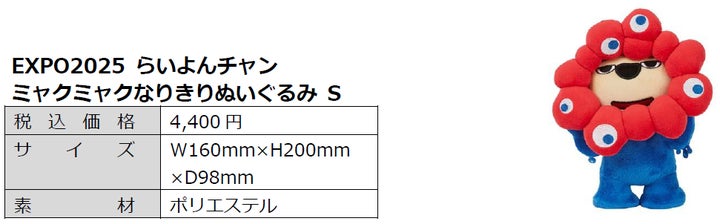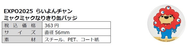 商品にはらいよんチャンとミャクミャクがデザインされたぬいぐるみや缶バッジなどが含まれます。