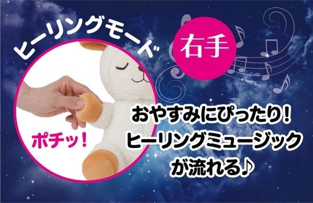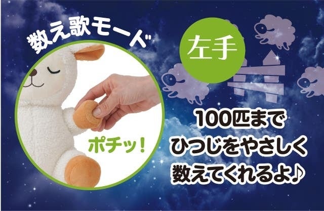 メェちゃんにはヒーリングミュージックとヒツジの数え歌が収録され、快眠をサポートします。