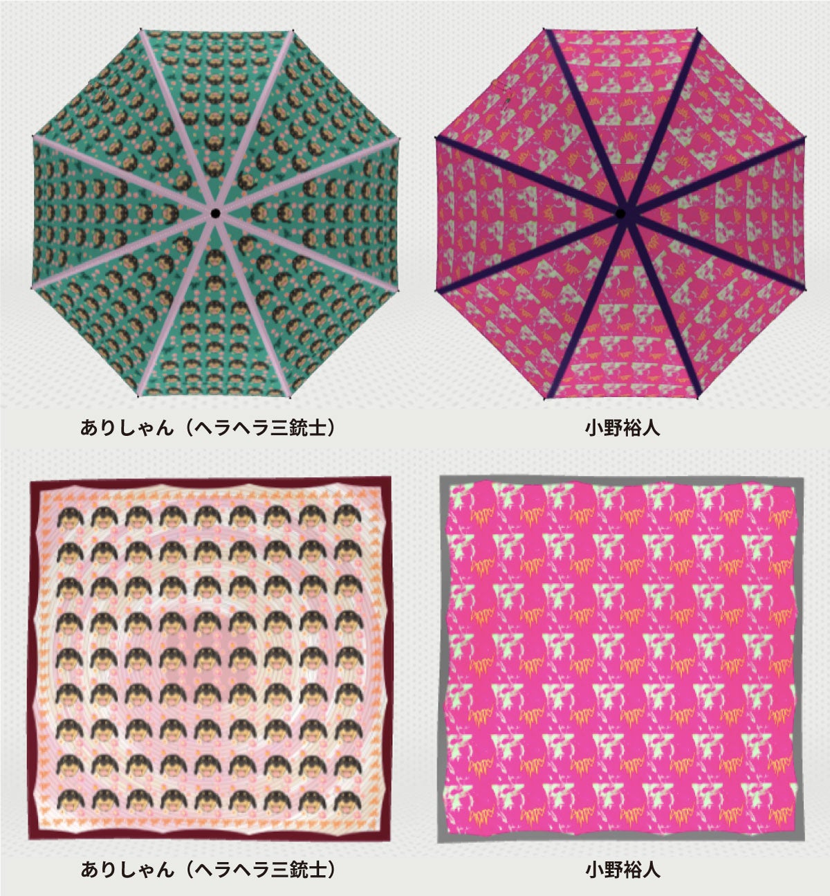 傘やスカーフも販売されており、アーティスト25名のアートコレクションも展示されています。