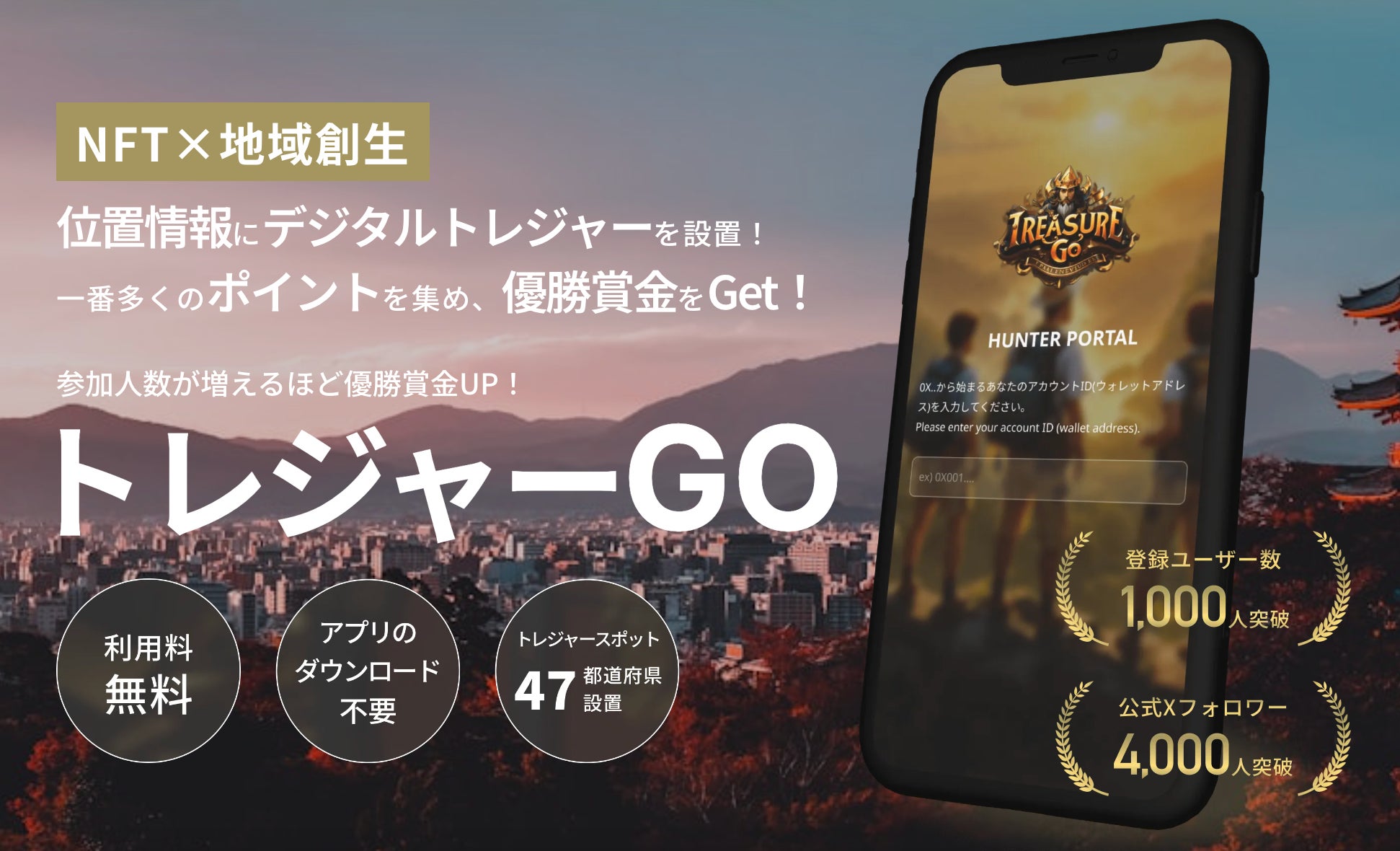 日本全国と京都府丹後地域を舞台にした宝探しエンターテイメントを展開し、参加者はデジタルトレジャーを集めて賞金を獲得し、地域経済を活性化します。