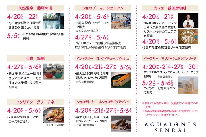 アクアイグニス仙台の2周年記念特別企画が盛りだくさんです。
