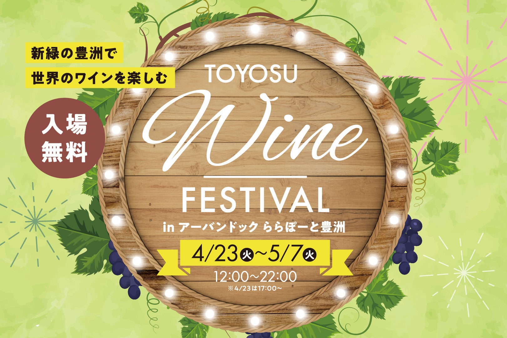 4月23日から5月7日まで、アーバンドックららぽーと豊洲で開催される「TOYOSU WINE FESTIVAL」は、世界各国のワインとペアリングメニューを楽しめるイベントです。