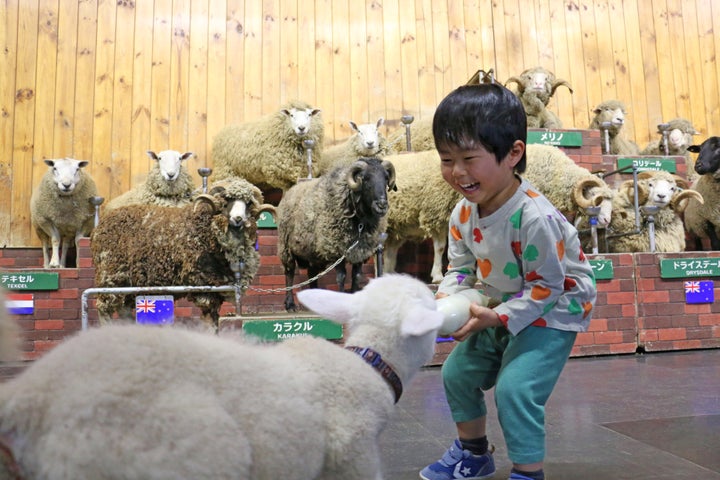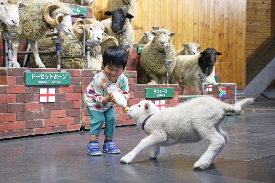 アグロドームで行われる「シープショー」では、赤ちゃん羊がミルクを飲む姿を特別に披露します。