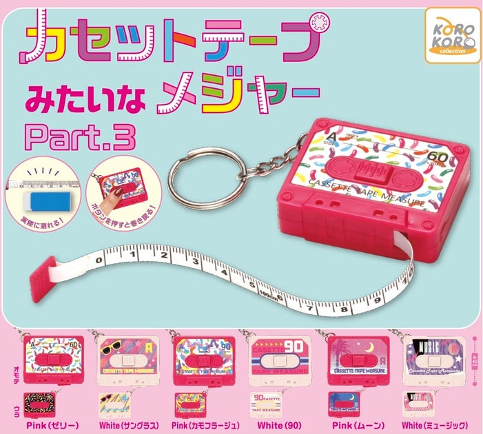2024年4月中旬から全国のカプセルトイコーナーで発売される『カセットテープみたいなメジャーPart.3』は、カセットテープをイメージしたメジャーです。