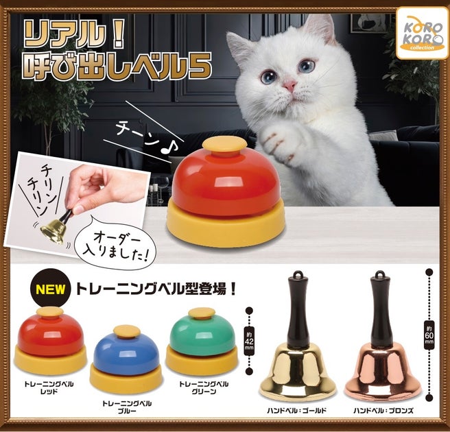 アイピーフォー株式会社が2024年4月中旬から全国のカプセルトイコーナーで発売する『リアル!呼び出しベル5』は、金属製で質感が良く響くカプセルサイズの呼び出しベルです。