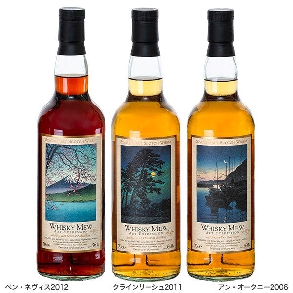 各ラベルにはベン・ネヴィス2012、クラインリーシュ2011、アン・オークニー2006などの風景が描かれており、価格は1本あたり16,500円から22,000円です。